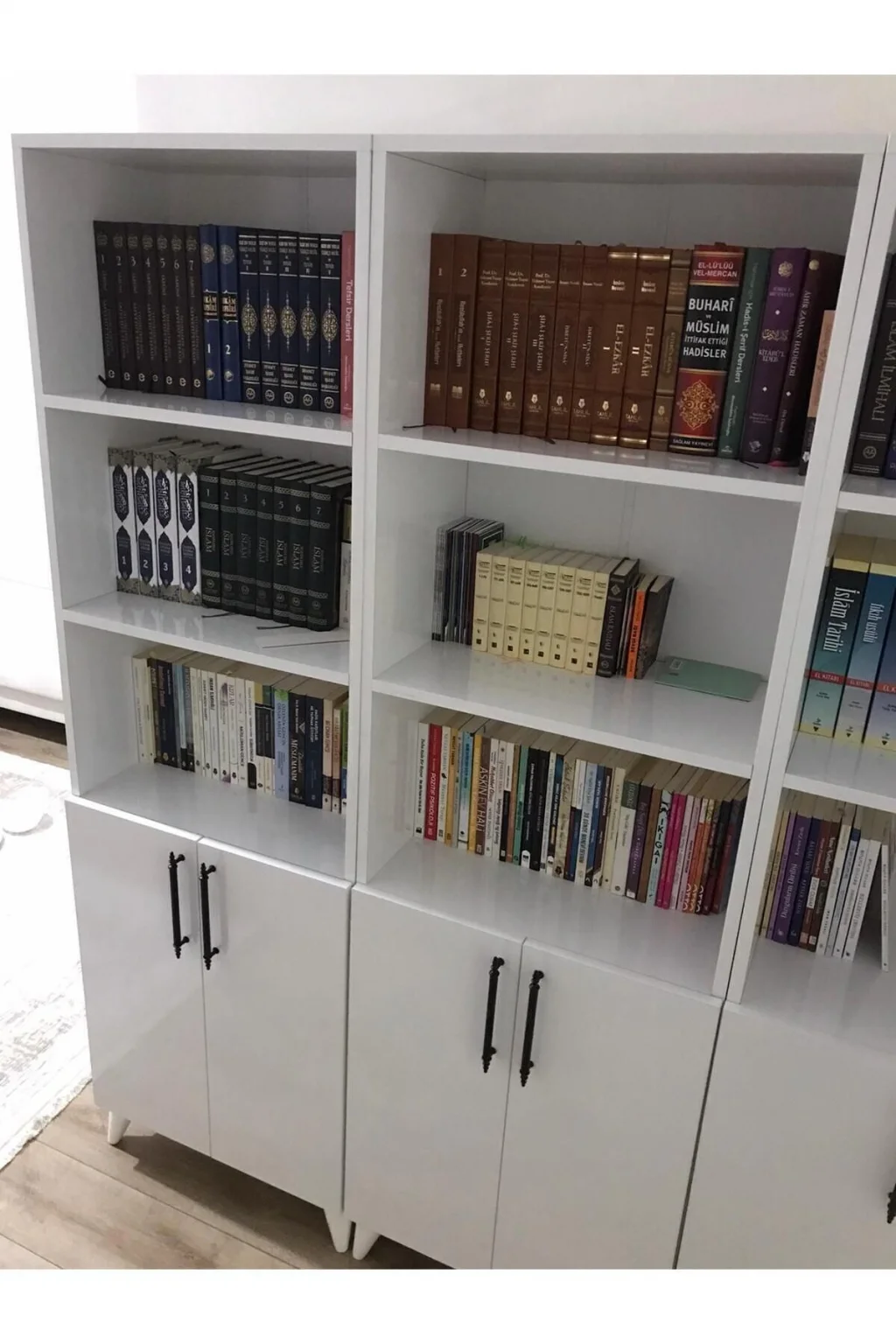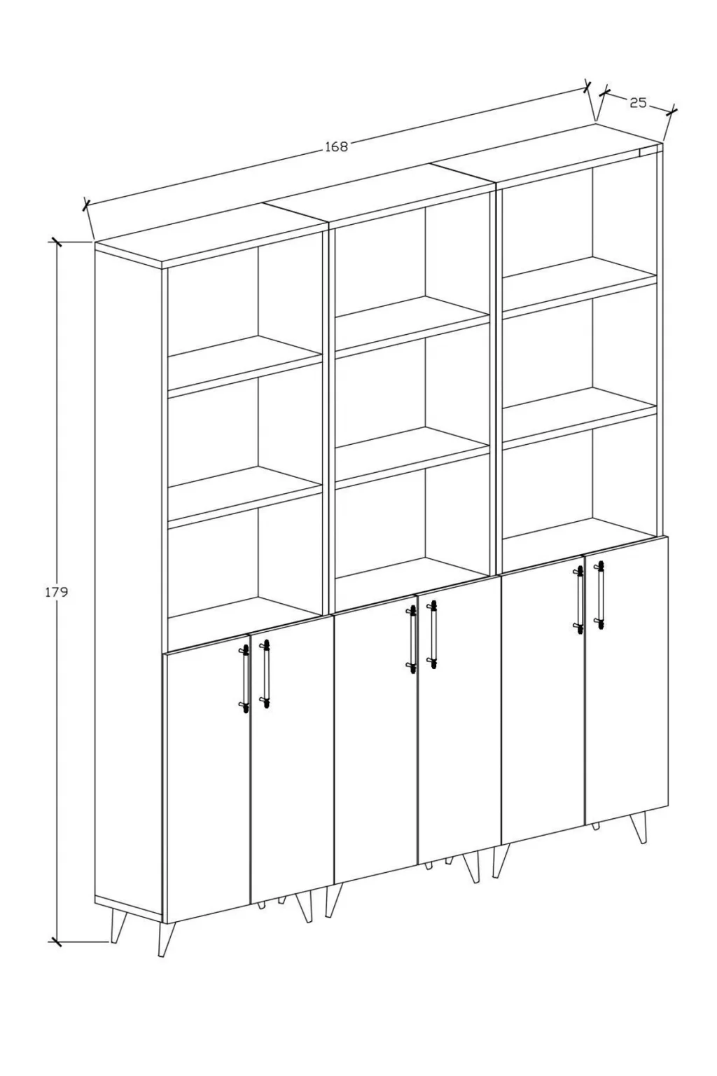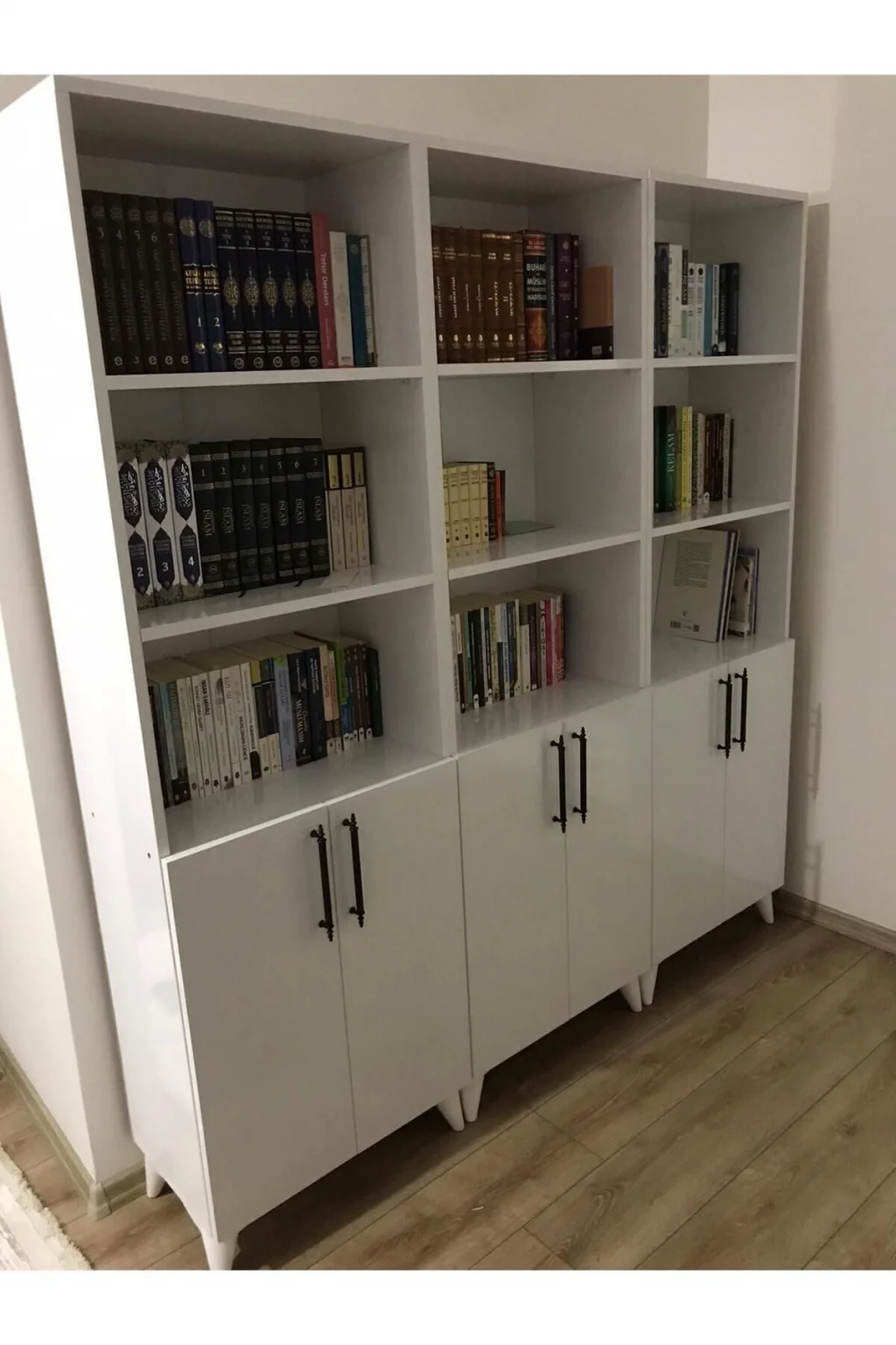 - Modern ve şık tasarımıyla her ortama uyum sağlayan 12 raflı kitaplık, geniş depolama alanı sunar.; - 168 cm genişlik ve 179 cm yükseklik ölçüleriyle, kitaplarınızı ve dekoratif eşyalarınızı düzenli bir şekilde sergilemenizi sağlar.; - MDF gövde malzemesi sayesinde dayanıklılık ve uzun ömürlü kullanım vaat eder.; - Beyaz renk seçeneği ile mekanınıza aydınlık ve ferah bir hava katar.; - Kapaklı tasarımı, kitaplarınızı tozdan korurken, odanızın estetiğini de bozmadan saklamanızı sağlar.; - 25 cm derinliği ile kitaplarınızın ve diğer eşyalarınızın kolayca erişilebilir olmasını sağlar.; - Country tema ve klasik stilin modern dokunuşuyla, her dekorasyon tarzına uyum gösterir.; - Tek ebat tasarımı sayesinde evinizin her köşesine kolayca uyum sağlar.