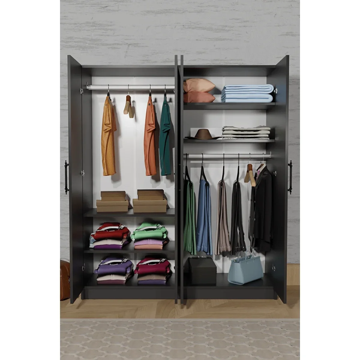 Bu şık antrasit renkli gardrop, Grcstyle kalitesiyle tasarlanmıştır. %100 MDF malzemeden üretilmiş olup sağlam ve dayanıklıdır. 4 kapaklı ve 2 askılıklı tasarımıyla kullanışlı bir depolama alanı sunar. Evinizdeki düzeni sağlamanıza yardımcı olacak bu gardrop, kaliteli malzemesiyle uzun ömürlü kullanım imkanı sunar.