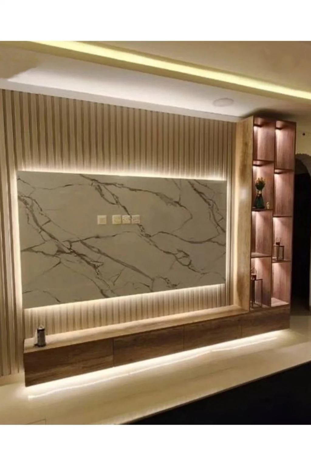 Ürün içeriğine TV ünitesi Duvar lambri LED'ler, TV Paneli dahildir.; Bizimle iletişime geçerek duvar ölçülerinize göre özel ölçülerde üretim yaptırabilirsiniz.; Ürünlerimiz tamamen 1. Sınıf MDF den üretilmektedir.; Duvar lambrim PVC malzemeden 280 cm uzunluğunda üretilmiştir.; Duvar yükseklik ölçünüze göre keserek kullanım yapmanız gerekmektedir.; TV Paneli 18mm kalınlığında MDF olarak üretilmiş LED'ler MDF üzerine kanal açılarak gömülmüş görünmeyecek şekilde dizayn edilmiştir.; TV paneli arkasına üçlü piriz montajı yapılmış tüm kablolar görünmeyecek şekilde tasarlanmıştır.; LED'ler ürün üzerine döşenmiş kanallara montajı yapılmış ve uçlarına soket takılarak gönderilmektedir.; TV ünitesinin ve Duvar Lambrilerinin montajını yaptıktan sonra LED'lerin soketlerini takarak yanmaya hazır hale getirebilir TV paneli yanındaki anahtardan açıp kapma işlemini yapabilirsiniz.; Hiçbir kesme lehim gibi işlemler yapmanız gerekmemekte bütün işlemleri yapılmış hazır halde gönderilmektedir.; Özenli paketleme ile ürünleri siz müşterilerimize ulaştırmaktayız hasar görme durumunda bizimle iletişime geçtiğiniz taktirde hasar gören parçaların yeniden temini sağlanmaktadır.; Resimlerde eklenmiş olan renk skalasından Duvar Lambri, TV Ünitesini, TV paneli ve LED renklerini seçebilirsiniz.; Alt TV ünitesi 200cm genişlik 32cm derinlik 40 cm yükseklik.; LED'li TV paneli 140 cm genişlik105 cm yükseklik.; Duvar lambri 200 cm genişlik 280cm yükseklik.; Yan raf 200cm yükseklik 32 cm derinlik 30 cm genişlik
