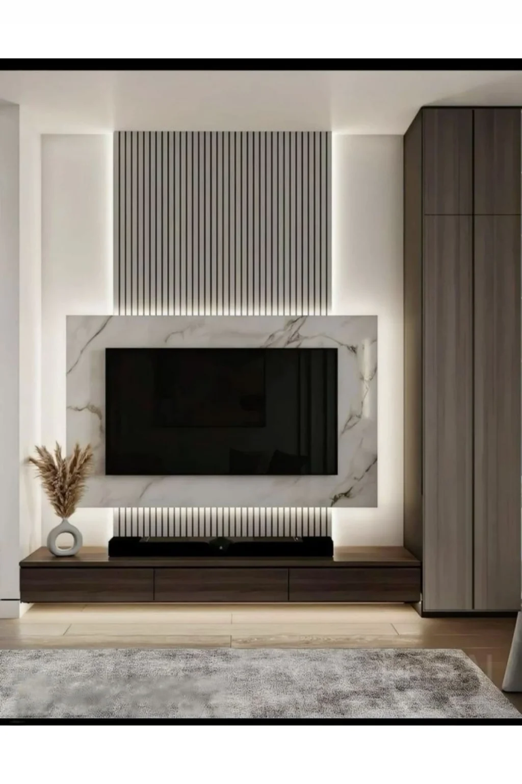 Ürün içeriğine TV ünitesi Duvar lambri LED'ler, TV Paneli dahildir.; Bizimle iletişime geçerek duvar ölçülerinize göre özel ölçülerde üretim yaptırabilirsiniz.; Ürünlerimiz tamamen 1. Sınıf MDF den üretilmektedir.; Duvar lambrim PVC malzemeden 280 cm uzunluğunda üretilmiştir.; Duvar yükseklik ölçünüze göre keserek kullanım yapmanız gerekmektedir.; TV Paneli 18mm kalınlığında MDF olarak üretilmiş LED'ler MDF üzerine kanal açılarak gömülmüş görünmeyecek şekilde dizayn edilmiştir.; TV paneli arkasına üçlü piriz montajı yapılmış tüm kablolar görünmeyecek şekilde tasarlanmıştır.; LED'ler ürün üzerine döşenmiş kanallara montajı yapılmış ve uçlarına soket takılarak gönderilmektedir.; TV ünitesinin ve Duvar Lambrilerinin montajını yaptıktan sonra LED'lerin soketlerini takarak yanmaya hazır hale getirebilir TV paneli yanındaki anahtardan açıp kapma işlemini yapabilirsiniz.; Hiçbir kesme lehim gibi işlemler yapmanız gerekmemekte bütün işlemleri yapılmış hazır halde gönderilmektedir.; Özenli paketleme ile ürünleri siz müşterilerimize ulaştırmaktayız hasar görme durumunda bizimle iletişime geçtiğiniz taktirde hasar gören parçaların yeniden temini sağlanmaktadır.; Resimlerde eklenmiş olan renk skalasından Duvar Lambri, TV Ünitesini, TV paneli ve LED renklerini seçebilirsiniz.; Alt TV ünitesi 200cm genişlik 32cm derinlik 40 cm yükseklik.; LED'li TV paneli 140 cm genişlik105 cm yükseklik.; Duvar lambri 100 cm genişlik 280cm yükseklik.