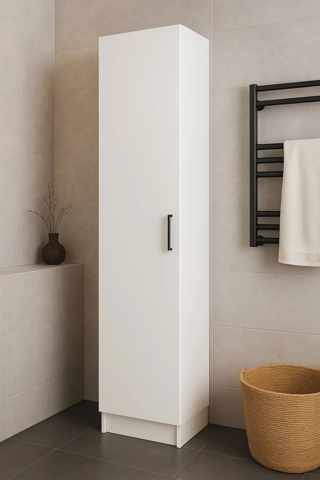 - Modern tasarımıyla evinizin dekorasyonuna şıklık katan tek kapaklı dolap, beyaz rengiyle ferah bir atmosfer sunar.; - MDF malzemesi sayesinde dayanıklılık ve uzun ömürlü kullanım vaat eder.; - Tek çekmecesi ile küçük eşyalarınız için pratik saklama alanı sağlar.; - 25 cm derinliği, 36 cm genişliği ve 149 cm yüksekliği ile ideal boyutlarda tasarlanmıştır, her mekan için uyumlu bir seçenek sunar.; - Beyaz web rengiyle modern stilinize mükemmel uyum sağlar ve mekanınızda aydınlık bir his yaratır.; - Türkiye menşeli olup, yerel üretim kalitesini evinizde deneyimleyebilirsiniz.