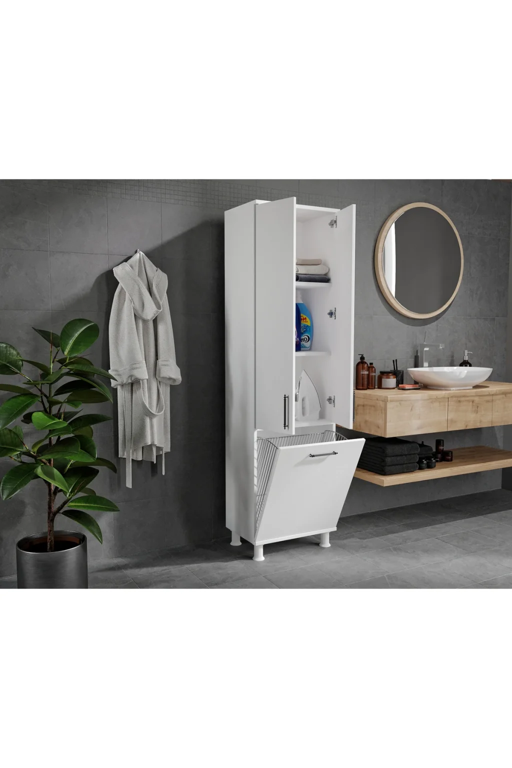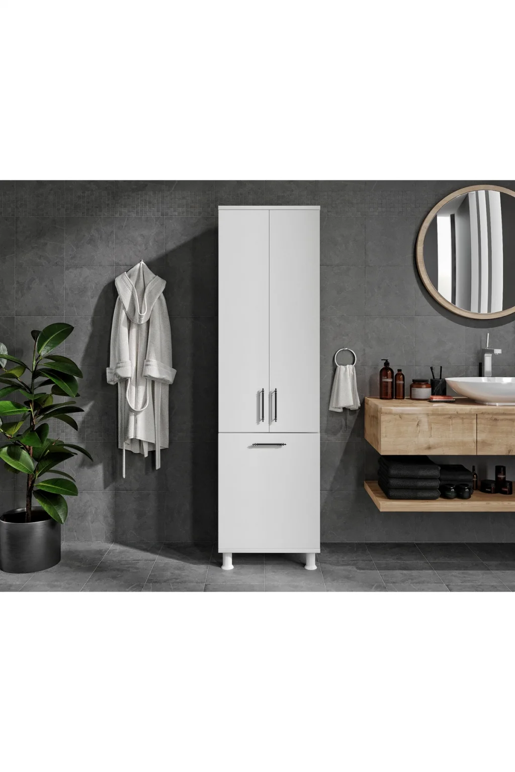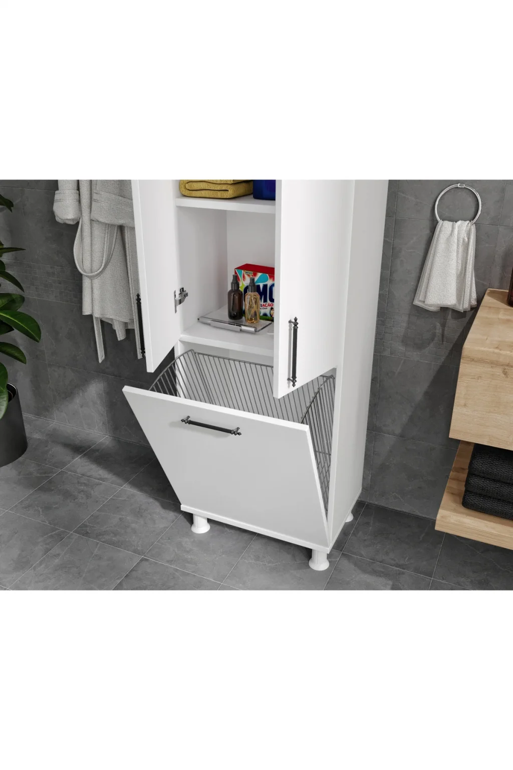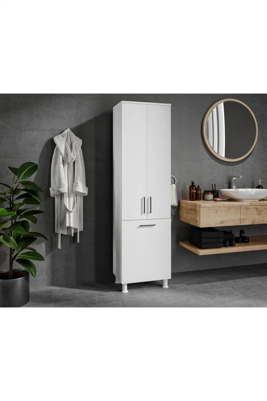 Ürünlerimizde %100 MDF kullanılmaktadır.; ; Birinci kalite hammadde ile yenilikçi tasarımı birleştirerek şık ve sade görünüme sahip ürünlerimizi üretiyoruz.; ; Özenle paketlediğimiz ürünlerimizin kurulumu için gerekli olan anlatım paket içerisinde vardır.; ; Demonte olarak gelen ürünlerin kurulumu basit ve bütün gerekli vidalar paketin içerisindedir.; ; YÜKSEKLİK: 196 CM DERİNLİK 41 CM (KAPAK DAHİL) GENİŞLİK 55CM;